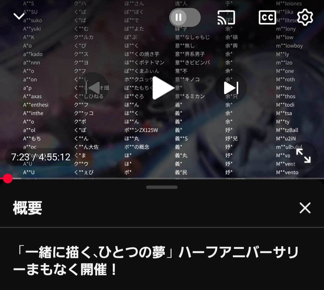 トリッカル公式がハーフアニバ記念に全プレイヤーの名前を羅列した感謝の動画を上げるなどしている