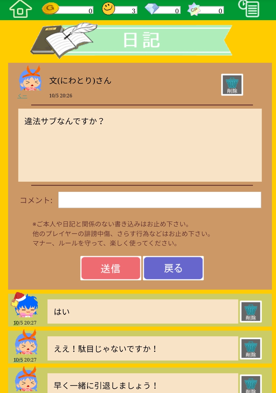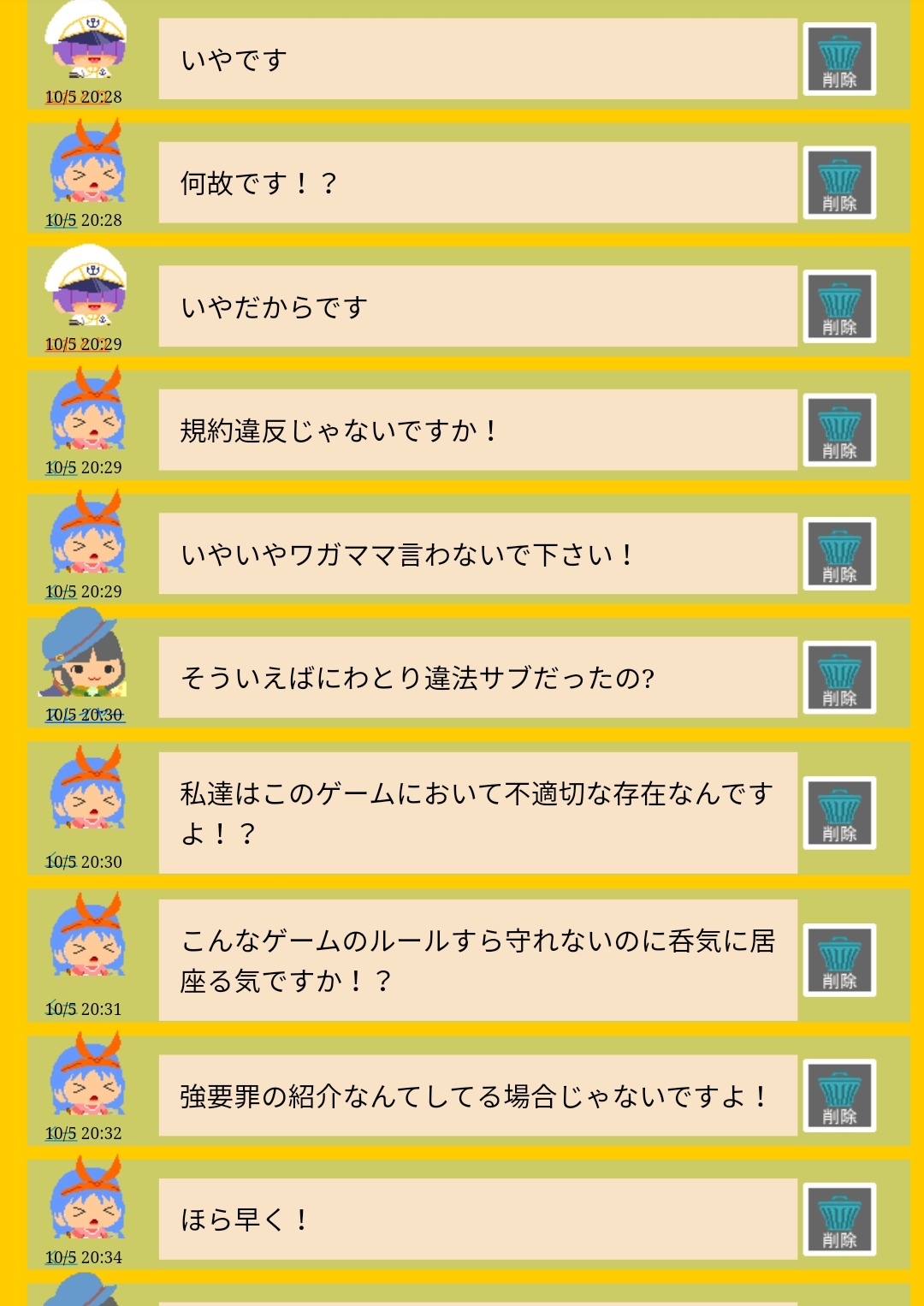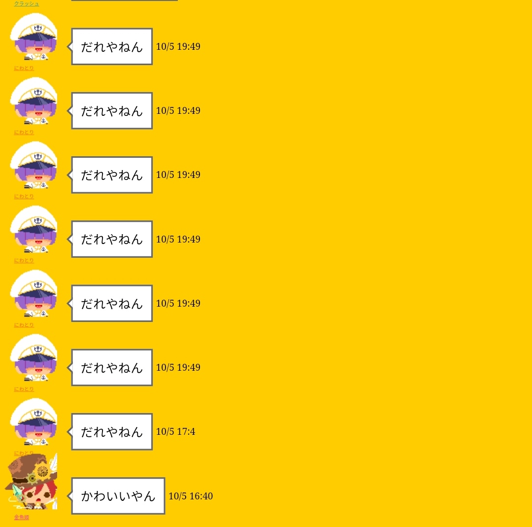 意味もなく連投し、人のルームを荒らす規約違反者![]() [132] | ||