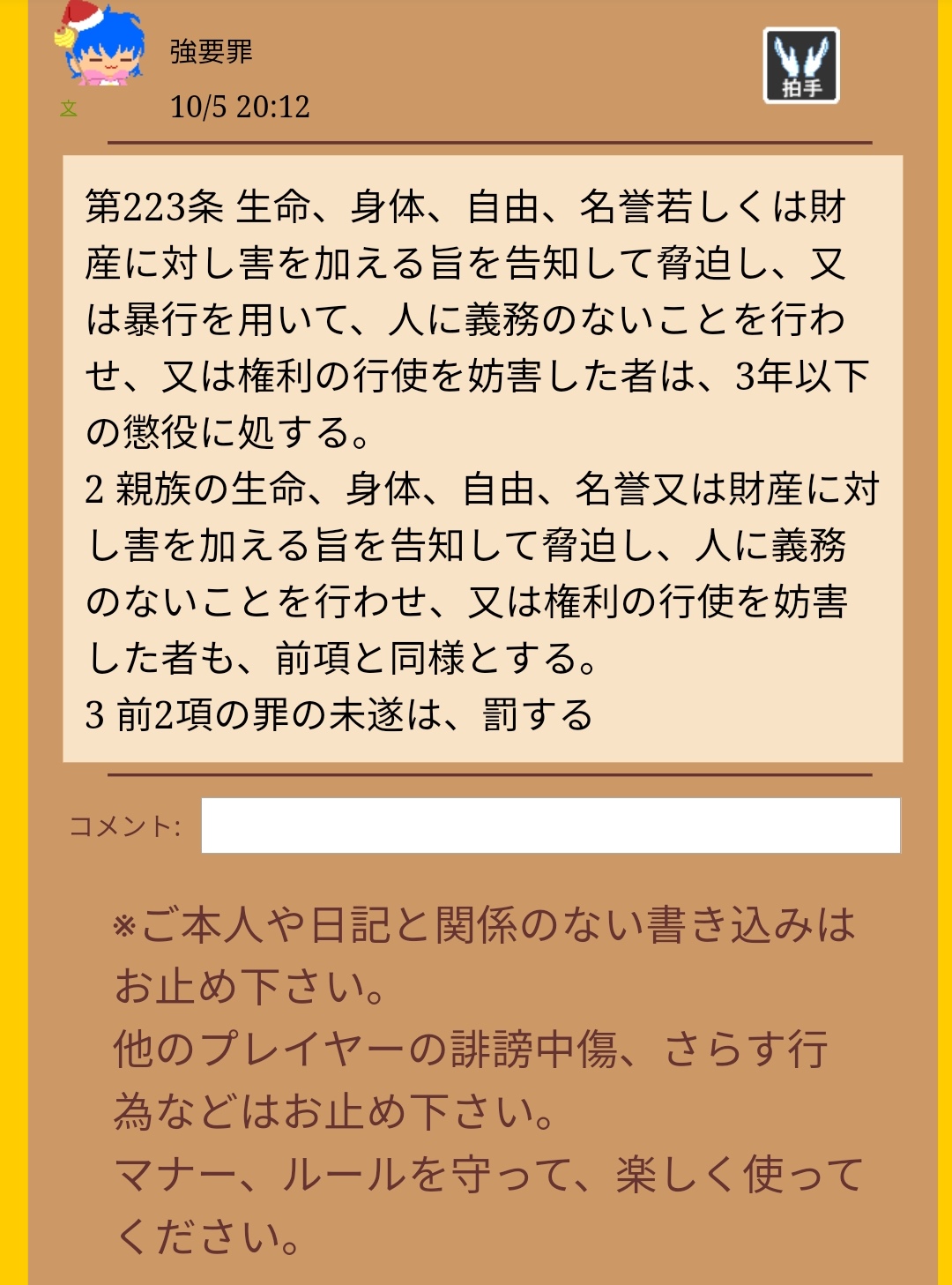 法律を紹介する規約違反者![]() [1676] | ||