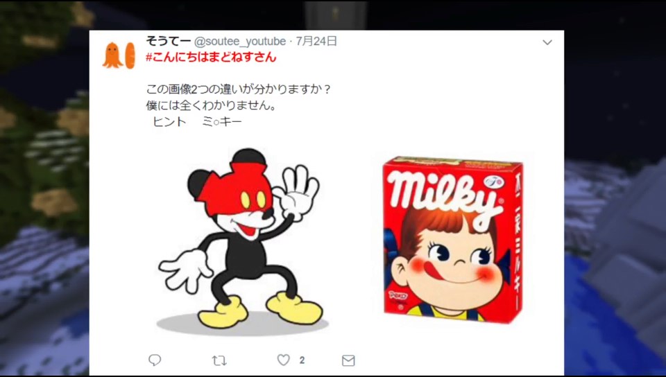 | >>6756 ミッキーとミルキー?????1文字違いなだけじゃないの? [5098] | ||