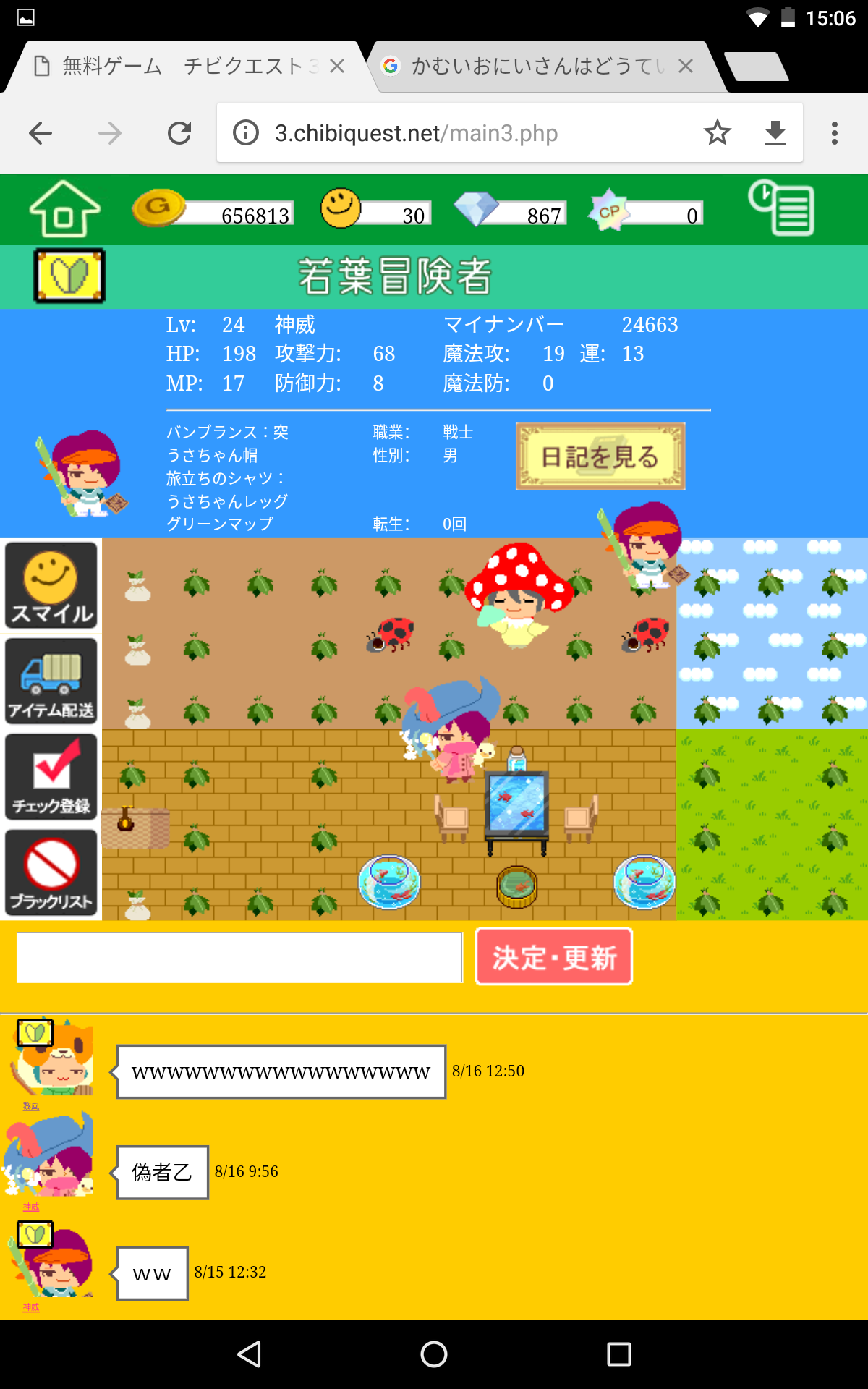 | http://3.chibiquest.net/main3.php?com=dir&num2=21609&dno=43 ↑ 来れる方は是非来て下さい! [8735] | ||