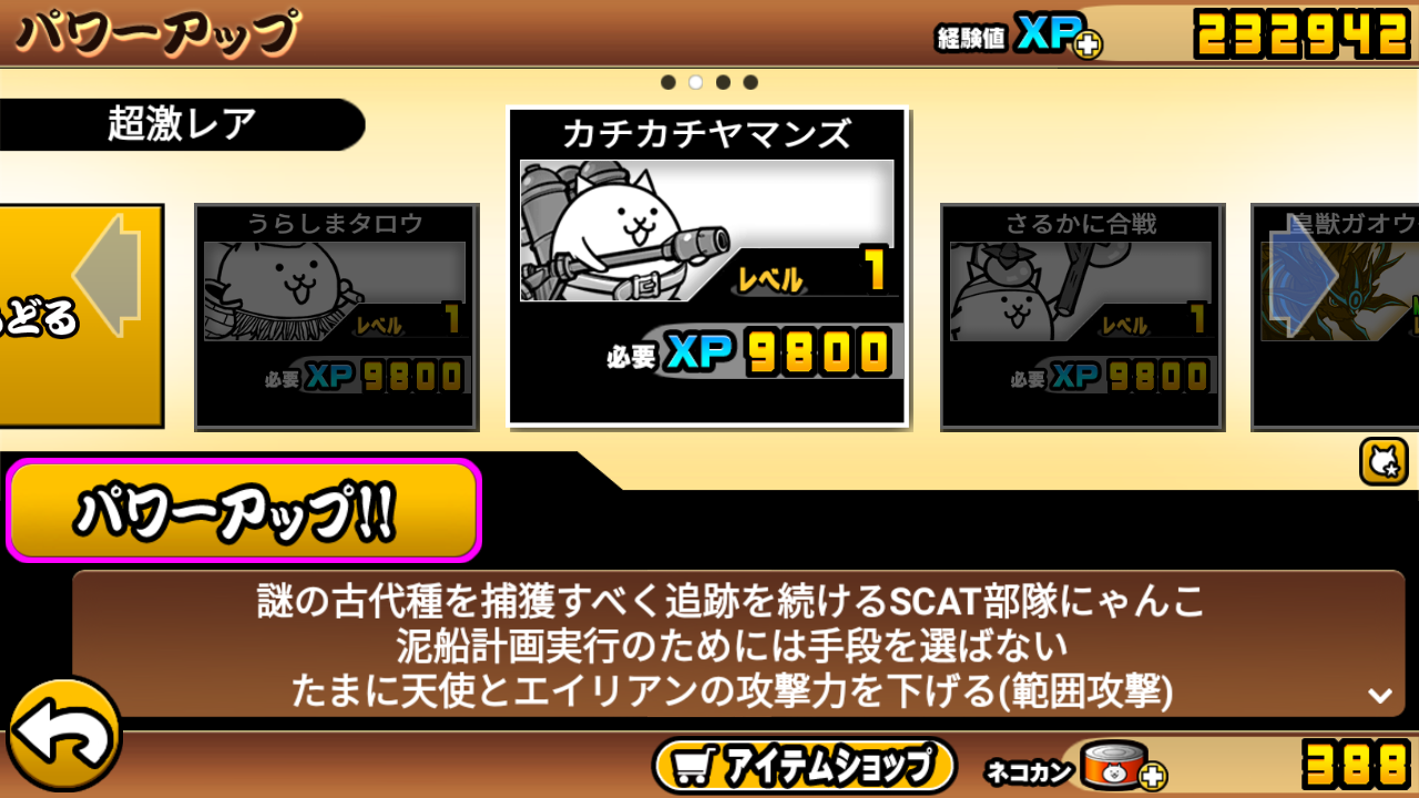| >>11313 狂乱の魚と鳥とトカゲ以外は黒ガオウいたら結構楽 まあ壁いないときついし狂ネコと狂カベからやってくのがよさげ マタタビはマタタビでるステージでマタタビ集めてそれ使って第3形態にする感じ [1218] | ||