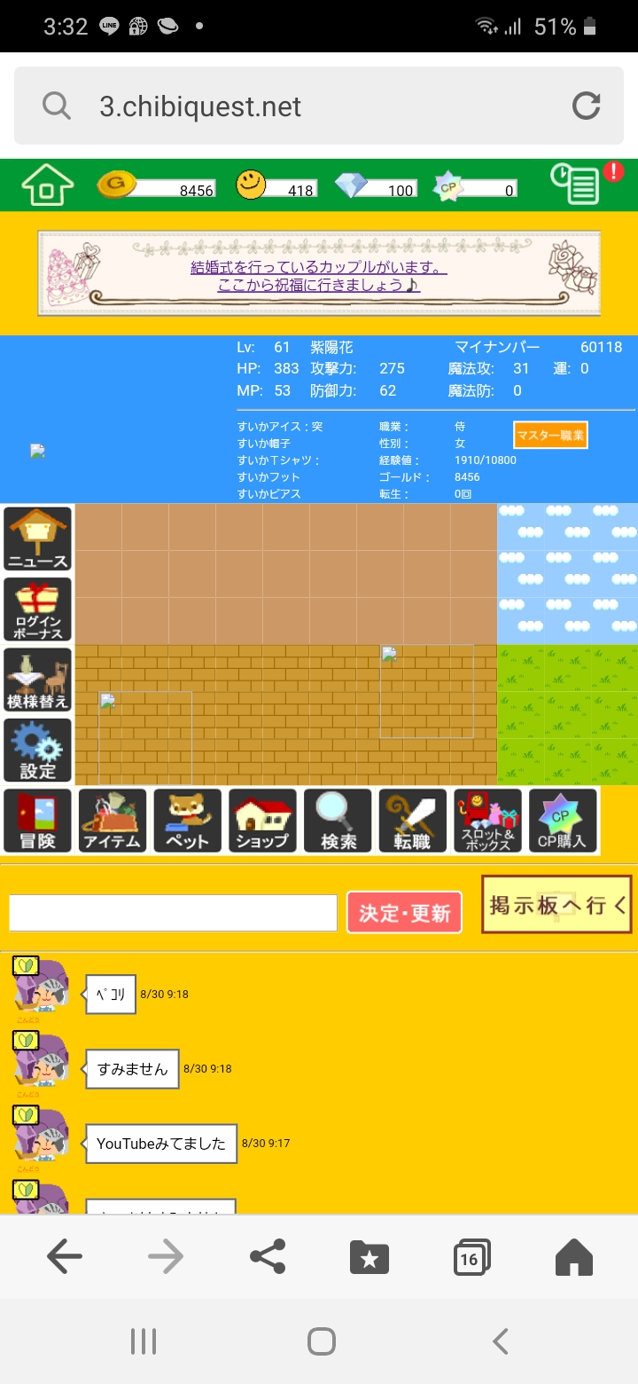 | チビクエスト3 > 掲示板一覧 > 雑談掲示板 |