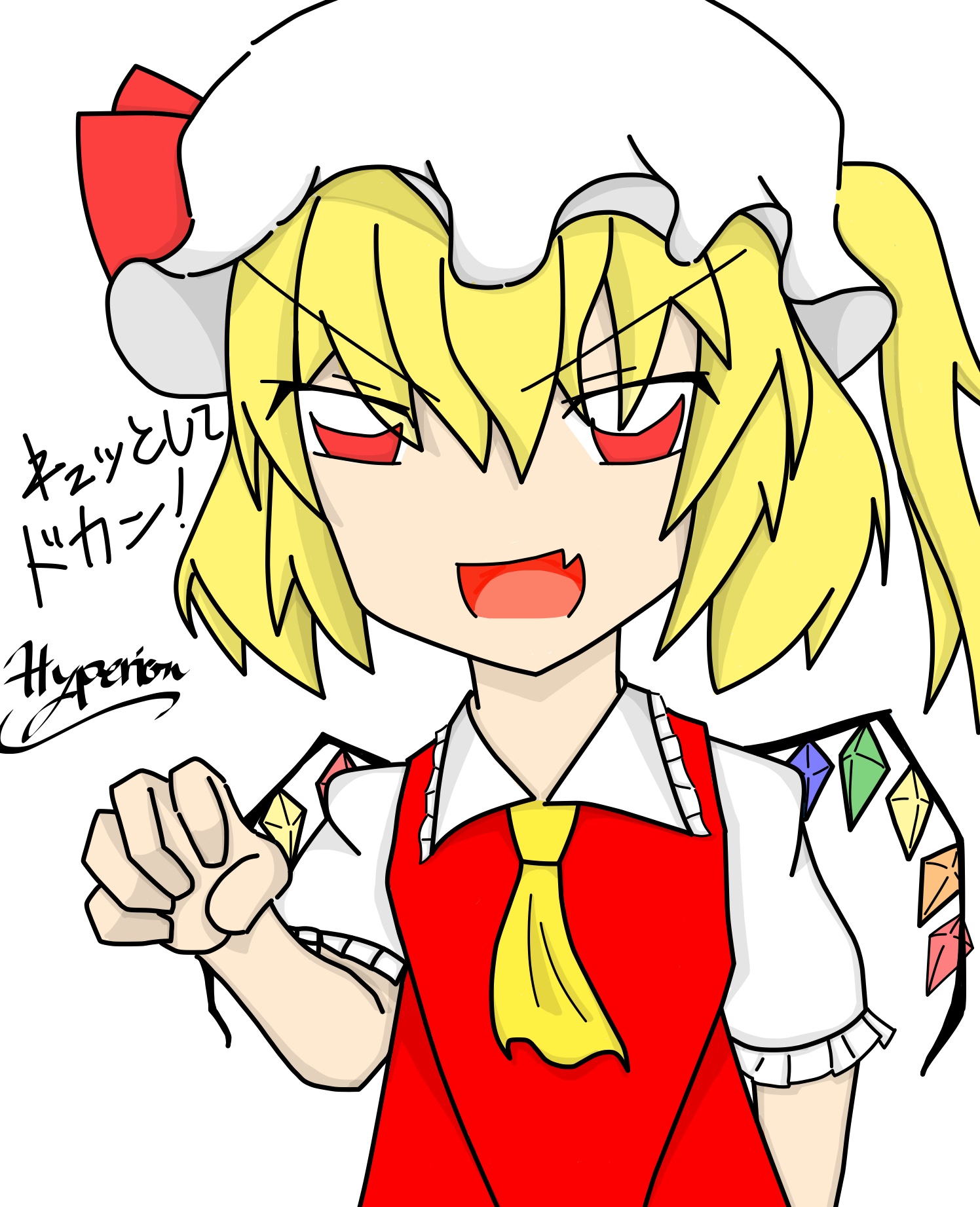 | Thanks to ウミユリ様 お見苦しいやも知れませぬが。無事完成したフランちゃんです。ホントにもぉzun帽の描きにくさと言ったら…。今までキャラの装飾品をサボってきた報いが来ております。 ![]() [9967] | ||