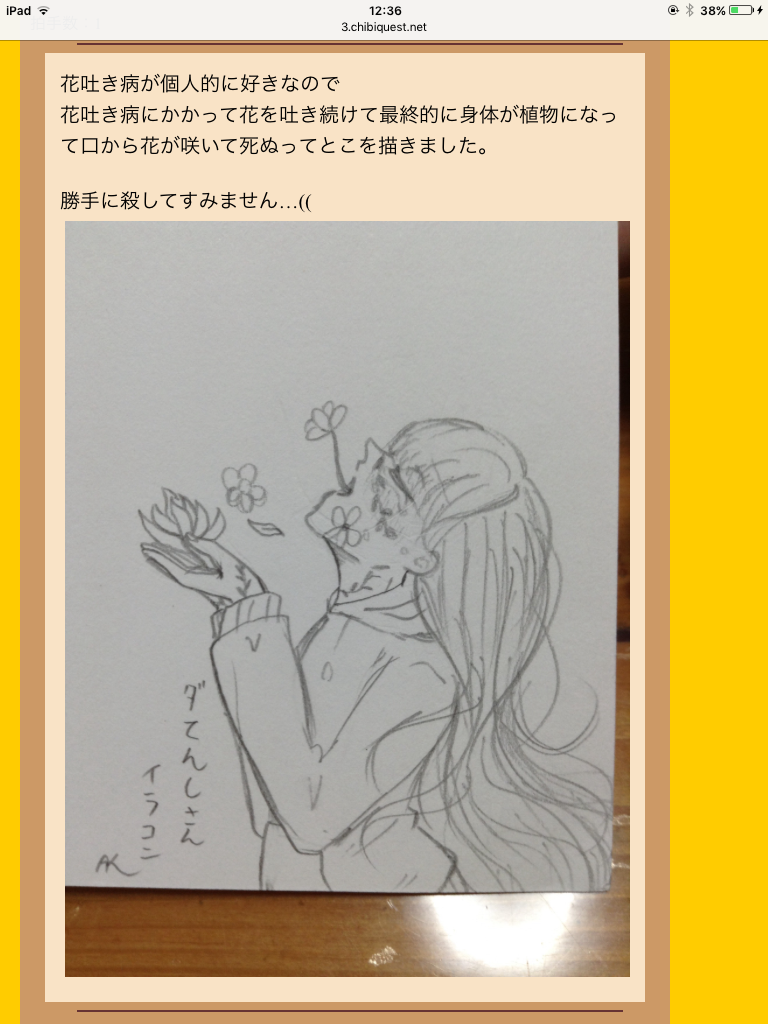 | わっち今イラコンしてるから良かったら参加してね〜 お正月まで開催しまーす。 景品は花びらくらいしかあげられないな〜。 あとこれ、今のところ1番気に入ってるやつ ![]() [6356] | ||