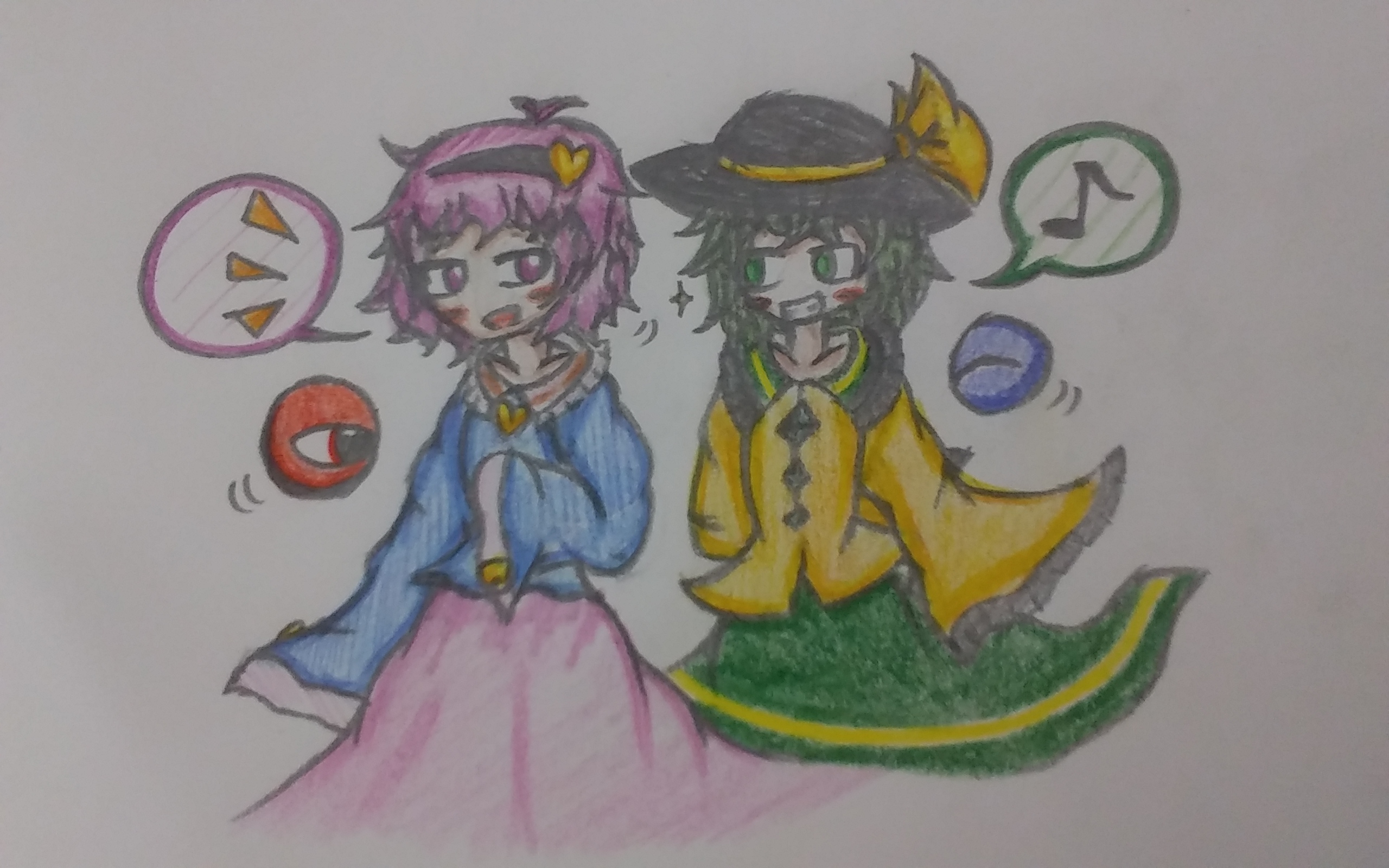 | 東方地霊殿から、ほのぼの系古明地姉妹。 相思相愛っていい言葉ですね!仲良しな二人にお似合いの言葉だ(( 実はこの絵、さとりん描きたくて描いただけだけど...なんか今まで描いた絵の中で一番平和そうだなって思った。東方の姉妹キャラの中で結構人気高そう(( 長文失礼しますた(ー_ー;) あと晩御飯の姉の手作りカレーうまかった() ![]() [5747] | ||