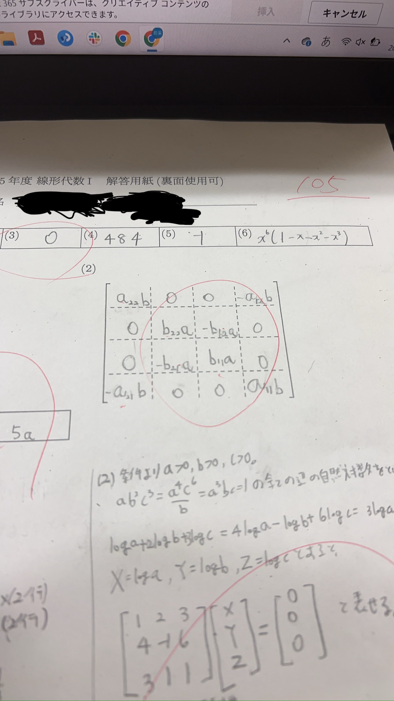 線形105点とったぞー。100点満点だけど発想点で5点加算された✌️ 中間100点やし、A+しかなくね?