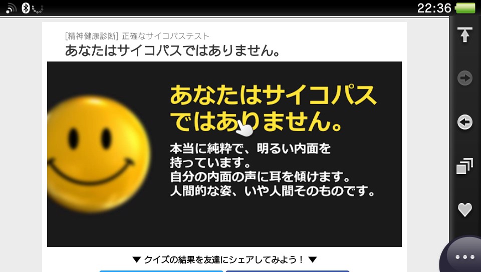 やったよ母ちゃん、俺ついにサイトからもサイコパス認定されなくなったよ!;)