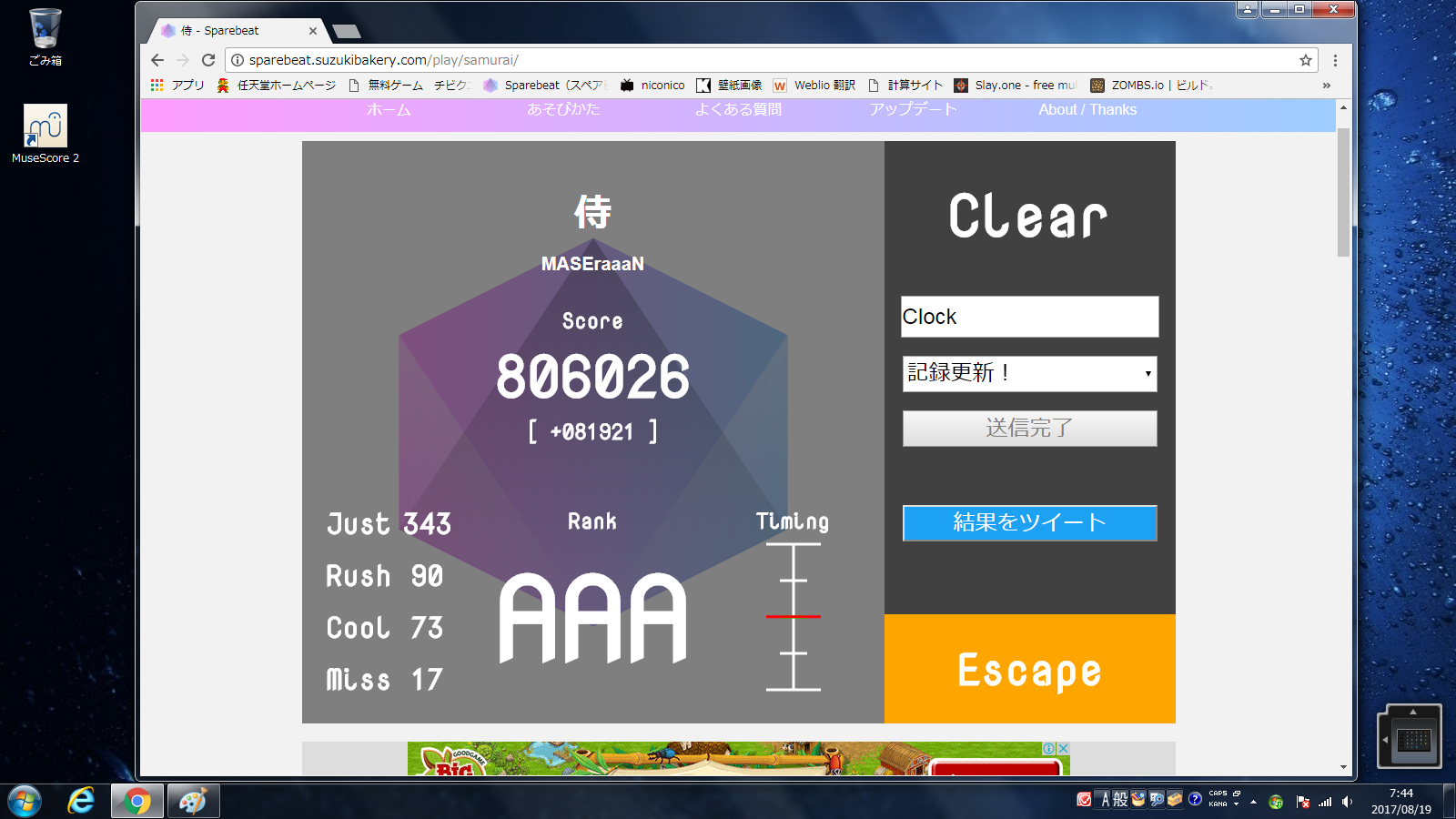 #sparebeat 侍 Hard