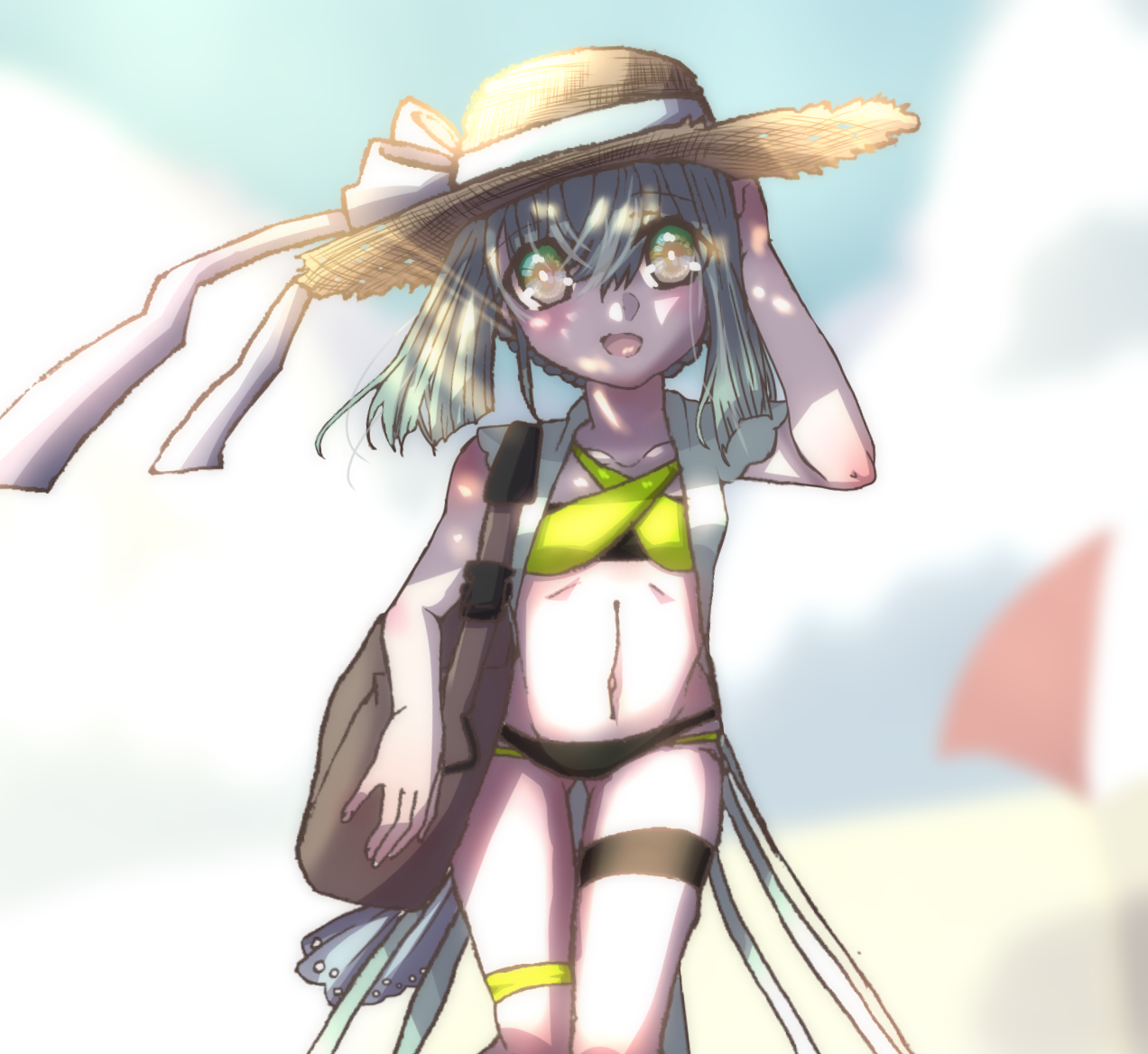 帽子の隙間から光が差し込んでるところやリボンがなびいてるところがすきです!夏を感じる素敵な作品ですね